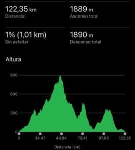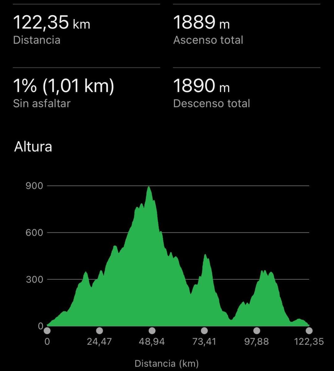 - Ruta de 122 Km. y 1.900m. de desnivel acumulado. (tiempo estimado G2 – 5 horas).